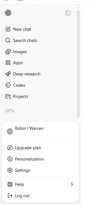 - Log into ChatGPT and click your profile icon in the bottom-left corner, then select Settings